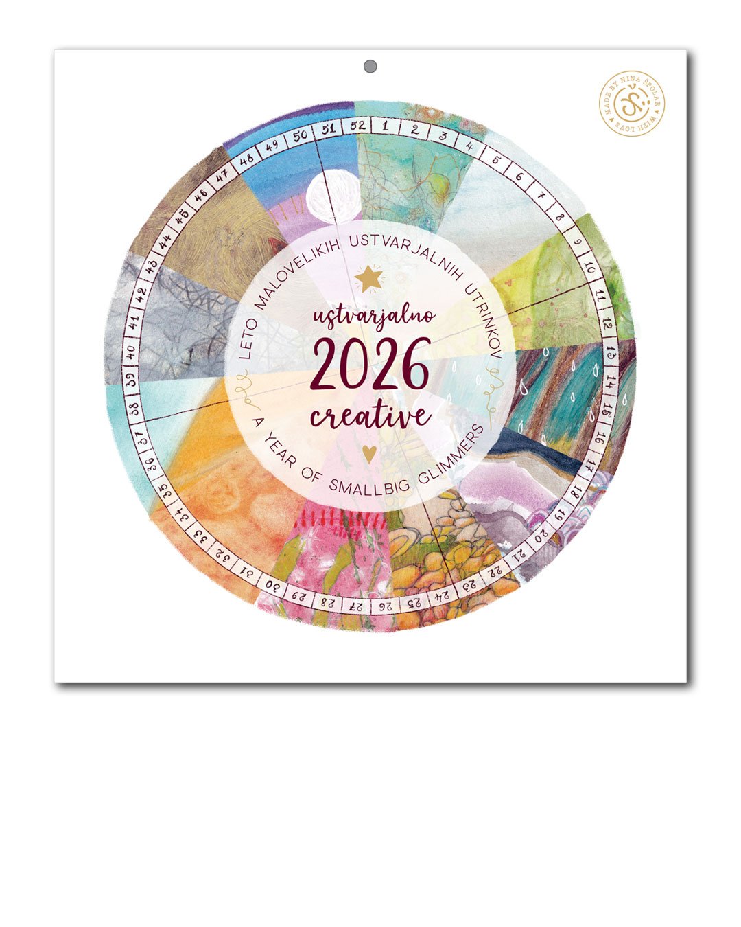 I am so excited about this special 2026 calendar because it not only holds 12 of my works from this year (2025) but because it comes with an invitation to be creative alongside me and others throughout the whole 2026. Those two extra pages at the back of the calendar are filled with 52 simple prompts for you to enjoy creating with. But only if you are drawn to them of course ;)